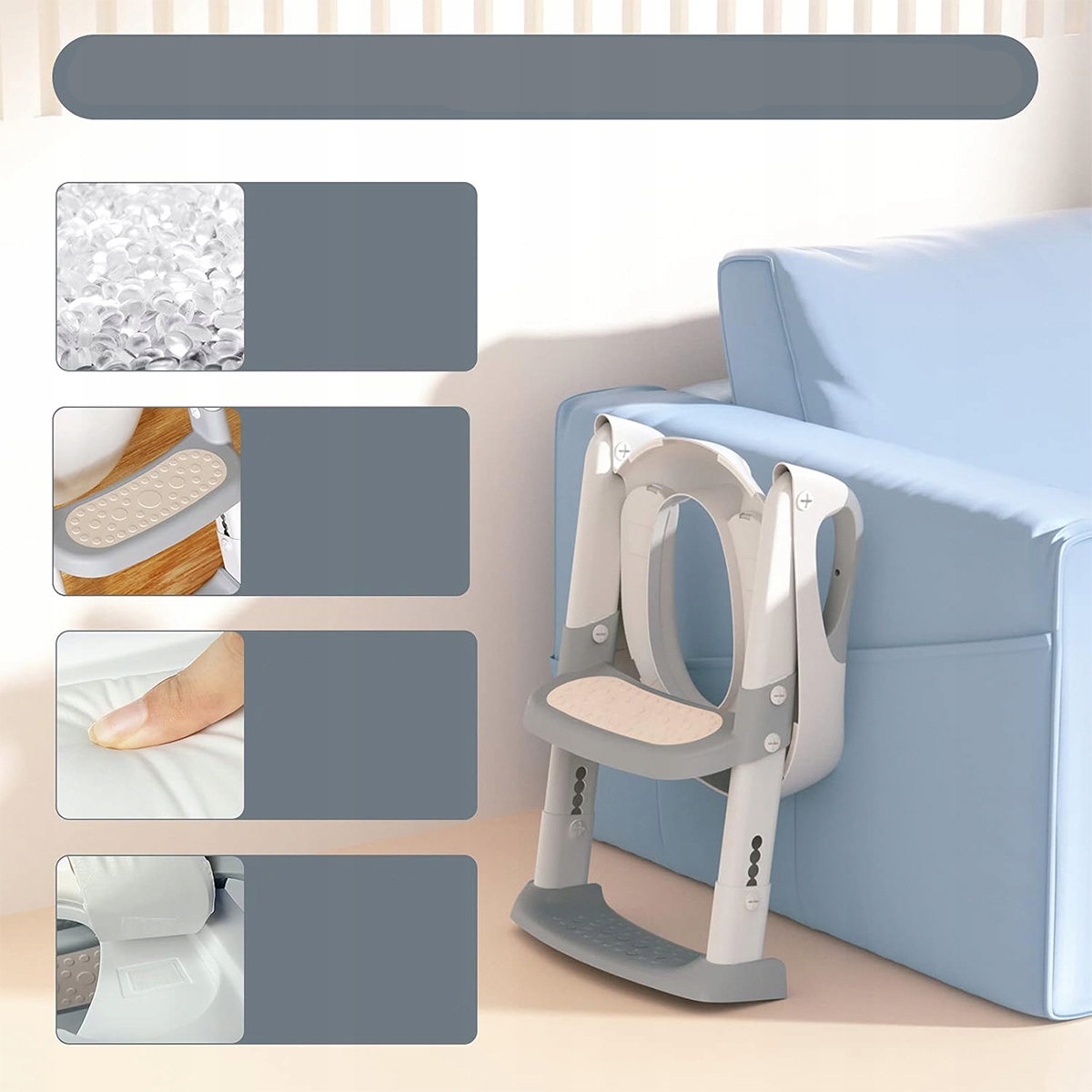 ✅ДИЗАЙН, УДОБНЫЙ ДЛЯ ДЕТЕЙ: Благодаря двойным поручням и широким педалям ваш ребенок может самостоятельно садиться и выходить. Уникальный стиль и классические белые и серые цвета позволяют мальчикам и девочкам весело провести время, обучаясь пользоваться туалетом.
