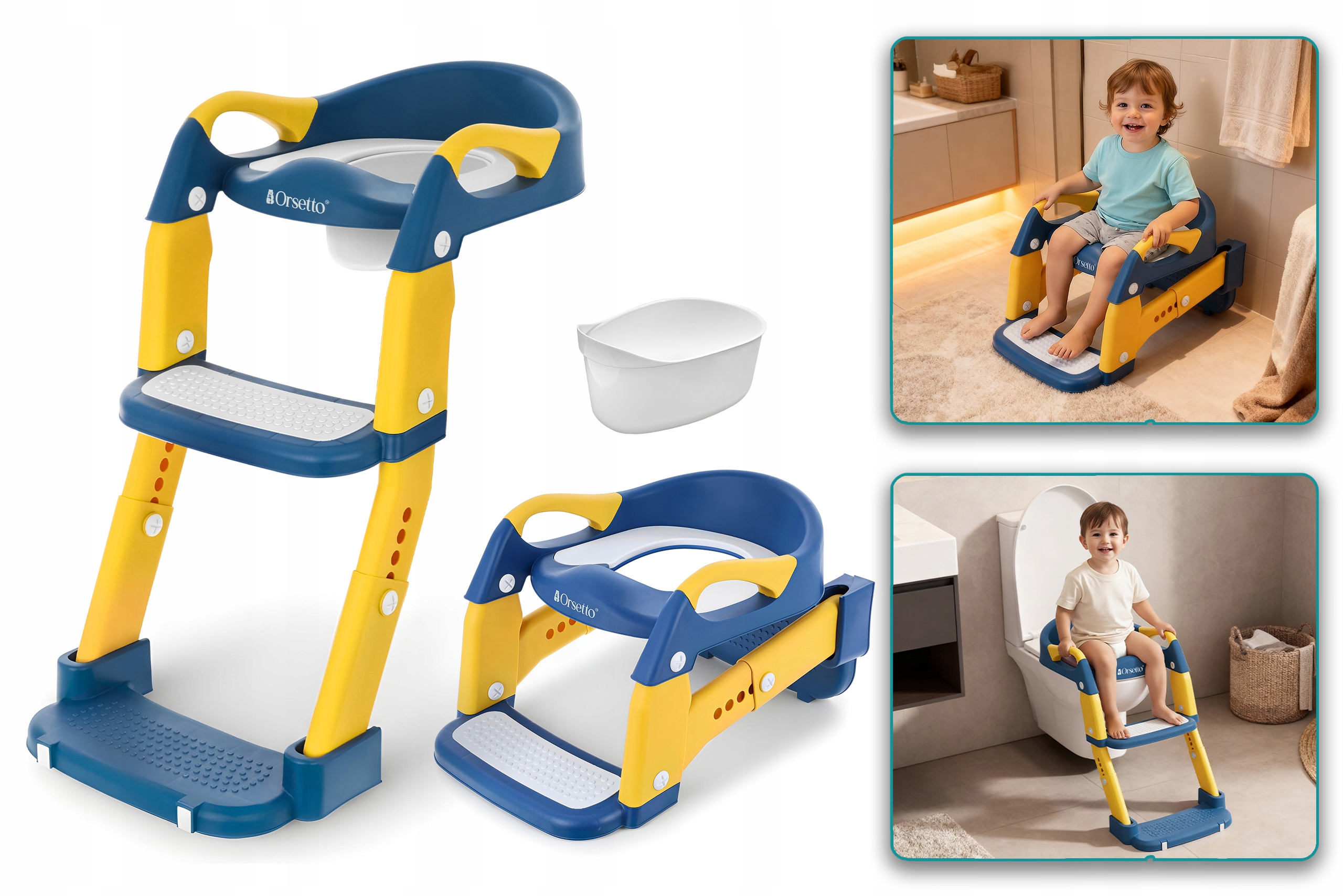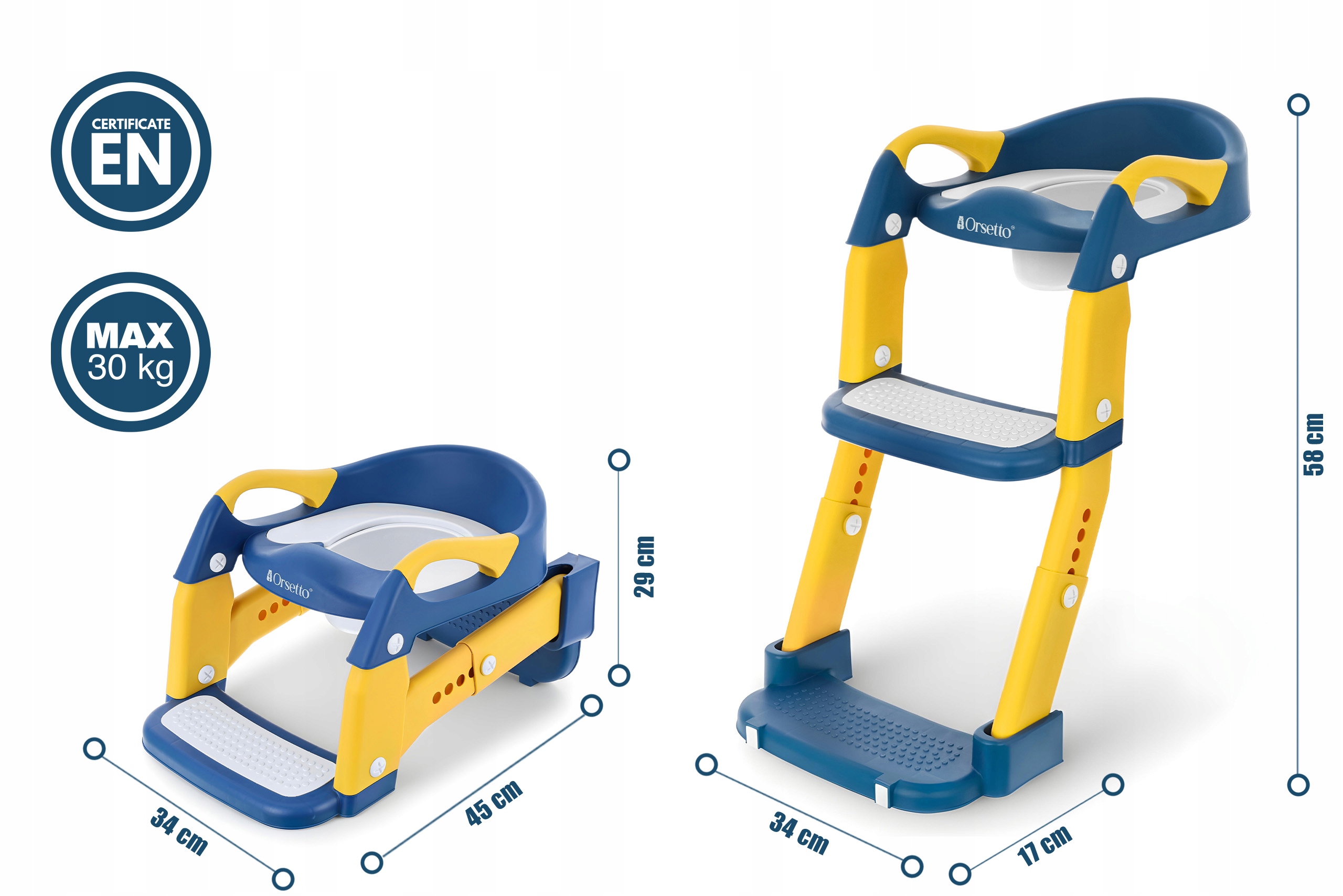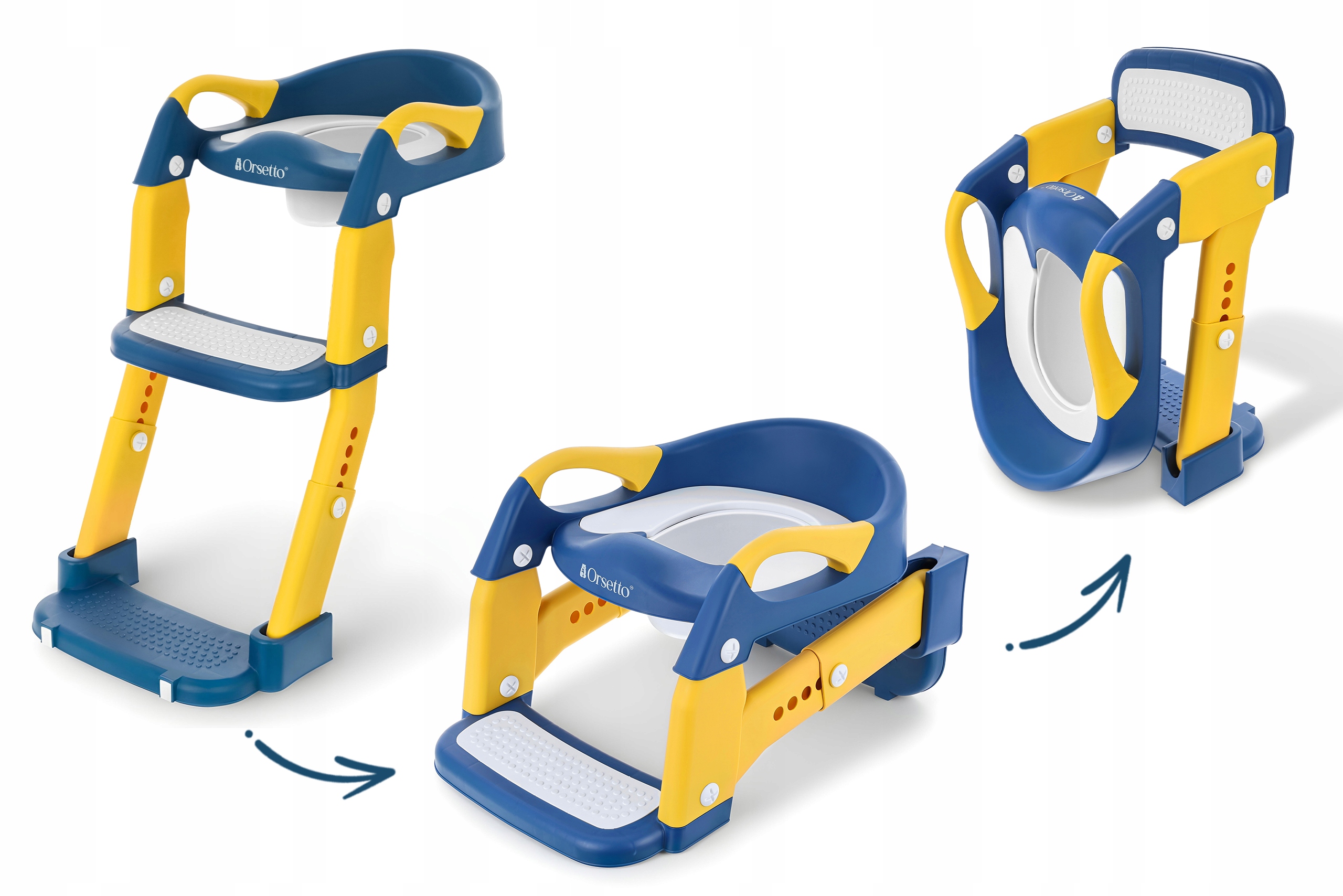 Научиться пользоваться туалетом самостоятельно может быть легко, безопасно и доставляет удовольствие – как ребенку, так и родителям! Чехол на сиденье унитаза ORSETTO 3 в 1 со лестницей — это практичное и многофункциональное решение, которое поддерживает вашего ребенка на каждом этапе смены подгузников. Прочная конструкция, удобное сиденье и нескользящие элементы превращают пользование унитазом в удовольствие.