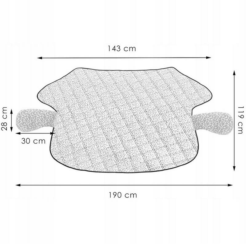 Установить коврик очень просто – достаточно прижать его дворниками снизу и прижать боковые выступы передними дверцами. Кроме того, чехол имеет держатель для зеркала и вшитые под материал магниты, которые крепятся к автомобилю, обеспечивая надежное крепление даже в ветреные дни.