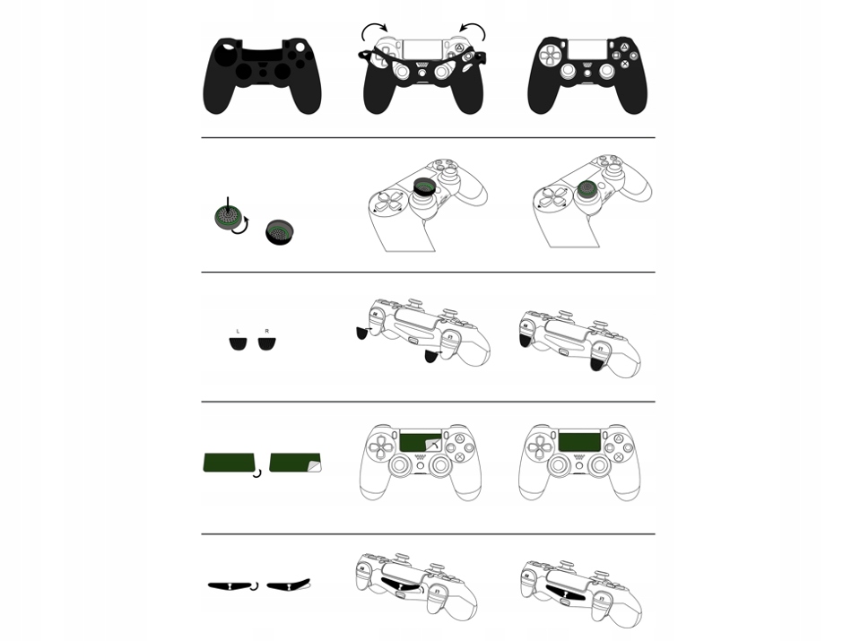 Крышка контроллера обеспечивает лучший захват и более точное управление во время игры. 2 подушечки стиков и 2 подушечки триггера имеют шероховатую поверхность, что улучшает сцепление стиков и триггеров и делает их использование еще проще. Фольга тачпада защищает его и придает интересный вид благодаря оригинальной игровой графике. Наклейка на панель с подсветкой меняет дизайн светодиодной подсветки и немного снижает уровень яркости.