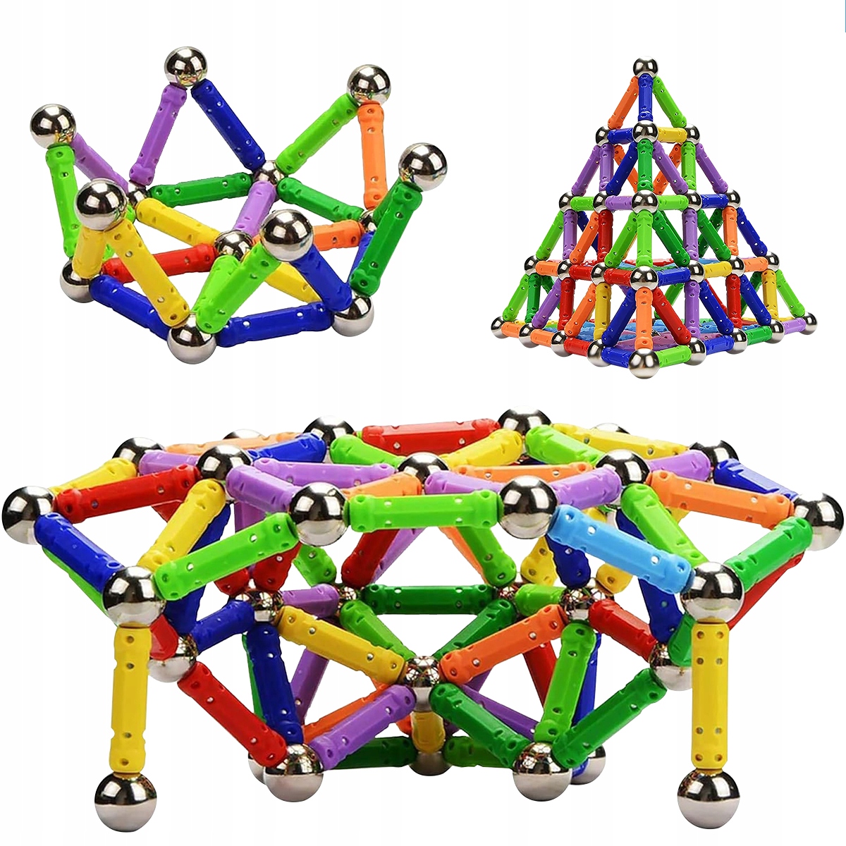 - Набор из 206 предметов: 142 магнитных стержня + 64 магнитных бусины.