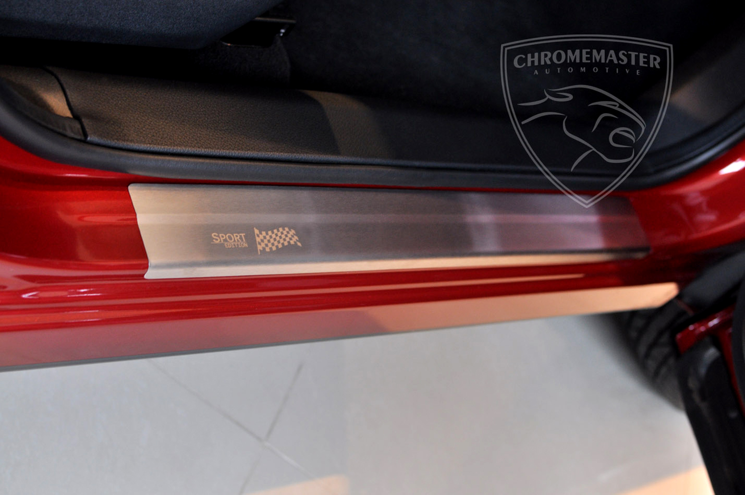 Накладки вырезаны лазером из кислотостойкой стали. Материал тестируется и подбирается соответствующим образом с точки зрения качества. Форма накладок адаптирована к поверхности порога. Накладки проклеены специальной автомобильной лентой, используемой автопроизводителями, что обеспечивает долговечность крепления. Логотип выгравирован лазером.