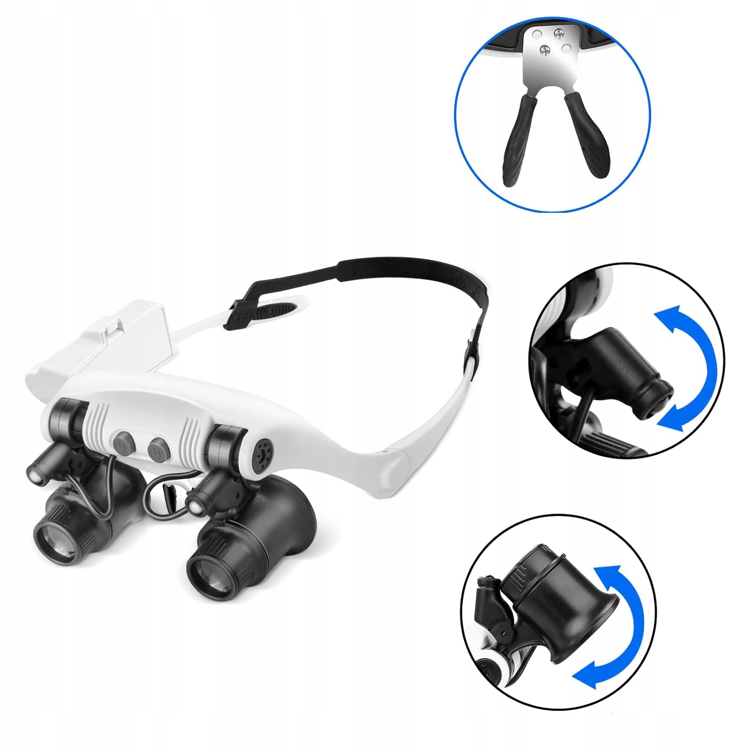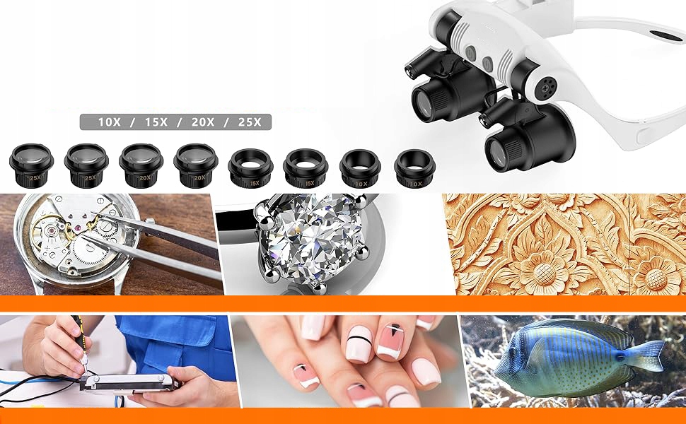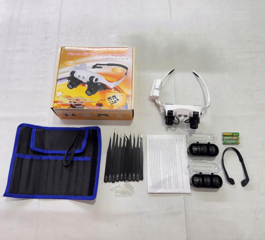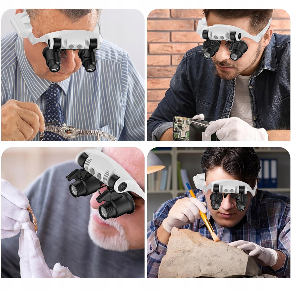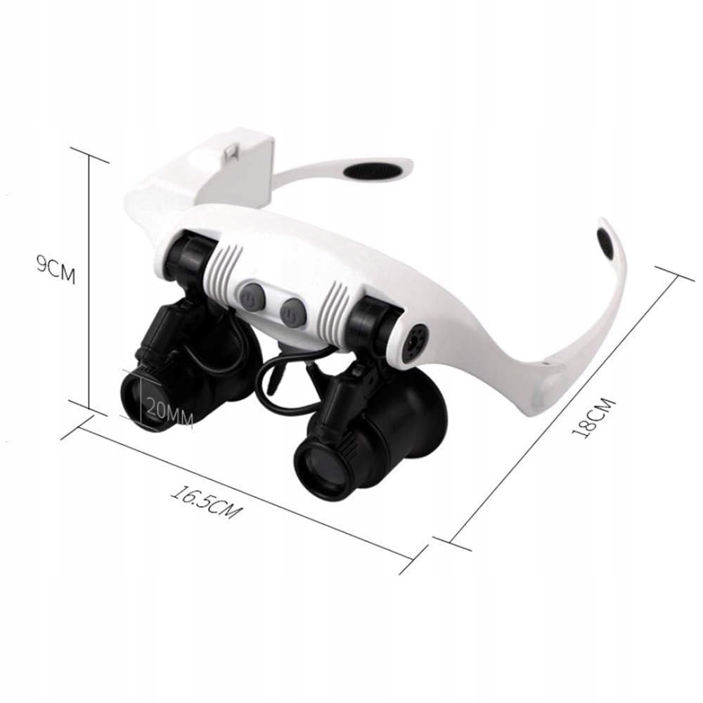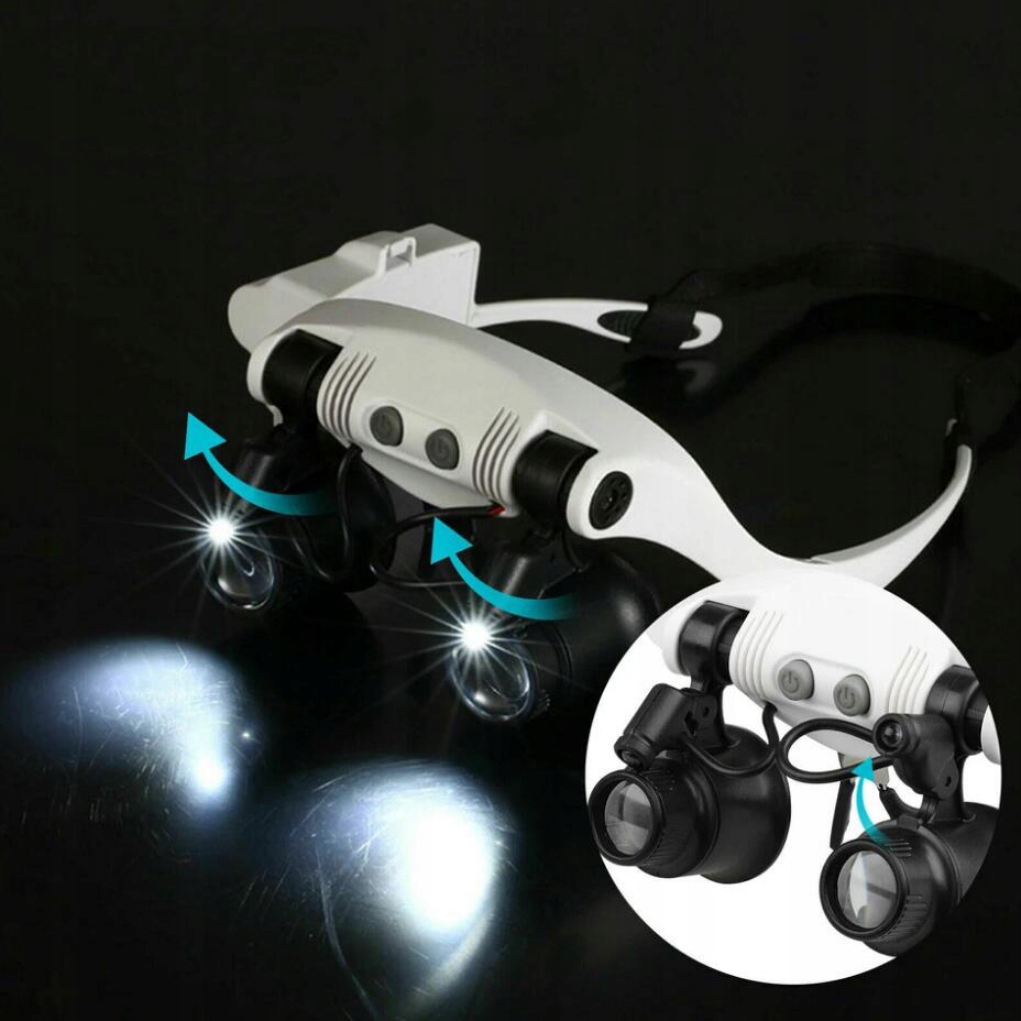 Наголовная лупа с подсветкой + 8 линз, лупа без помощи рук