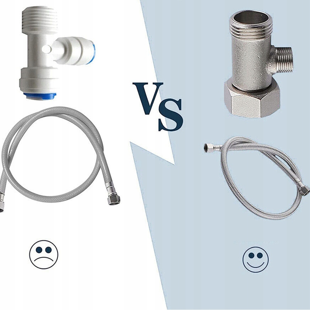 ⭐Шаг 4. Отсоедините оригинальный нержавеющий шланг. Шланг со стальной оплеткой, установите адаптер 3T и подсоедините шланг горячей воды из полиуретана к шлангу холодной воды со стальной оплеткой 1*.