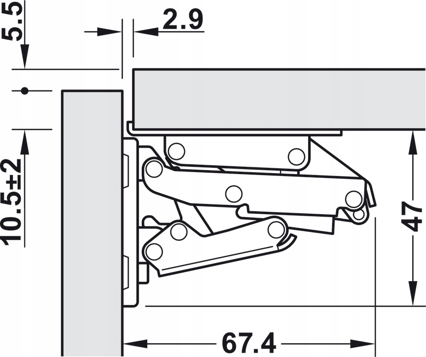 Это продукт превосходного качества, и, прежде всего, его очень легко установить. Используется для всех фасадов/дверей, открывающихся вверх и вес которых не превышает 2,1 кг.