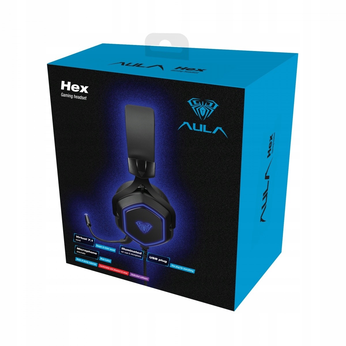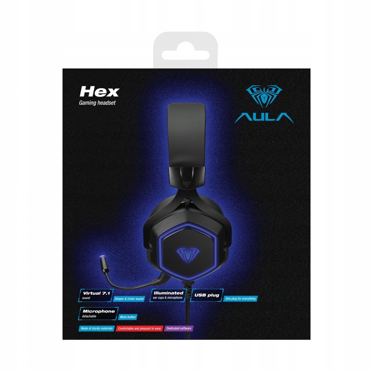 Игровые наушники AULA Gaming Hex USB 7.1 (с подсветкой)Откройте для себя лучшие игровые возможности с игровыми наушниками AULA Hex. Слушайте все в формате объемного звука 7.1. - от подкрадывания врагов до опаснейшего взрыва. Сделайте свой голос услышанным на поле боя с исключительной четкостью для вашей команды с помощью съемного микрофона. Регулируемое оголовье делает наушники удобными даже после многих часов игры. Чашки наушников с подсветкой и микрофоном позволяют полностью погрузиться в игру. Подарите своим ушам невероятные впечатления от игры!