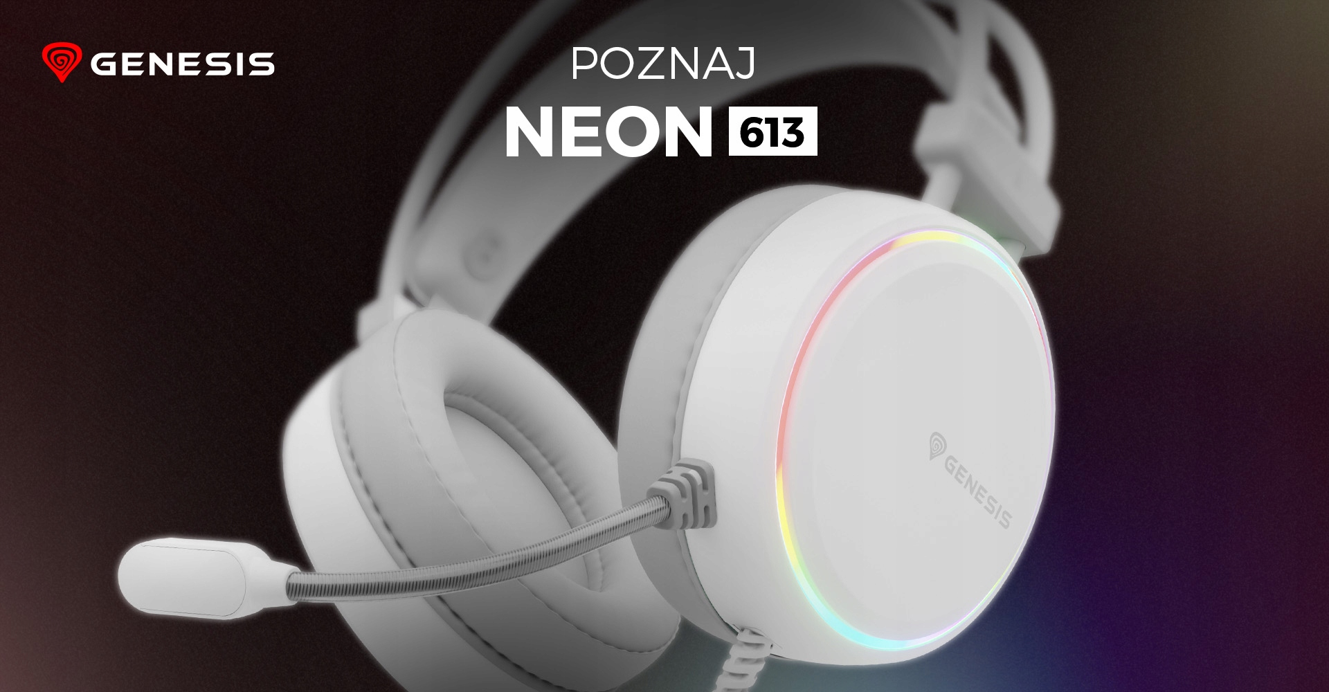 НАКЛАДНЫЕ НАУШНИКИ GENESIS NEON 613 RGB СО СВЕТОДИОДНЫМ МИКРОФОНОМ, БЕЛЫЕ