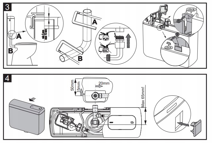 - Наружный диаметр бокового колена сливного бачка: 50 мм