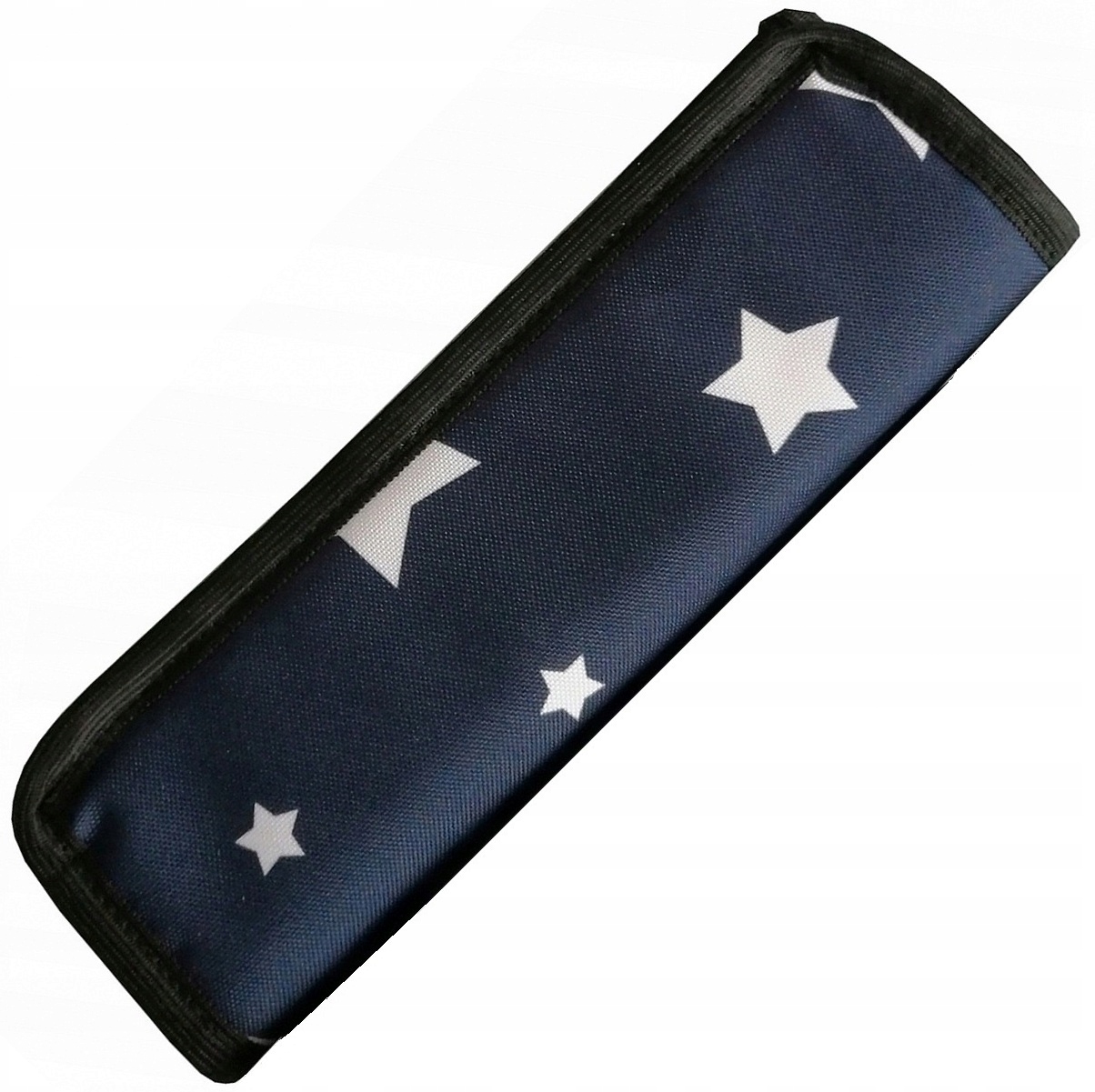 - Крепится к ремню безопасности, вставив его между чехлом и съемной материальной частью на липучке.