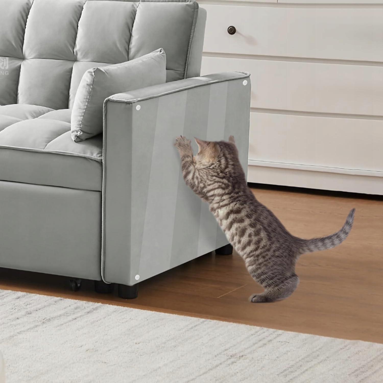 - Обеспечивает невидимую защиту от царапин кошек или собак, сохраняя при этом красивый внешний вид.