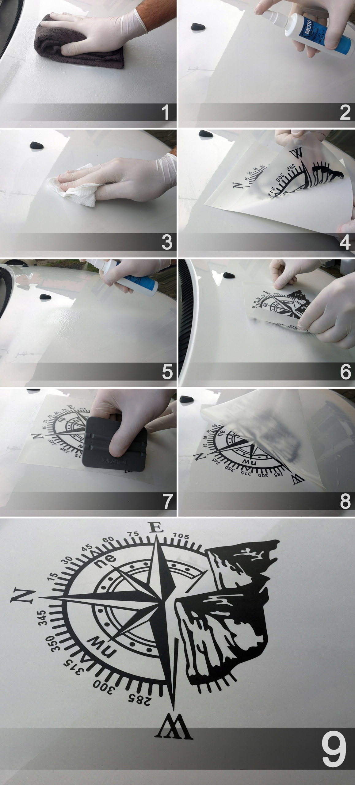 9. Наклейка готова. Полное склеивание с основанием происходит через 24 часа – до этого времени мы не рекомендуем использовать автомойки.