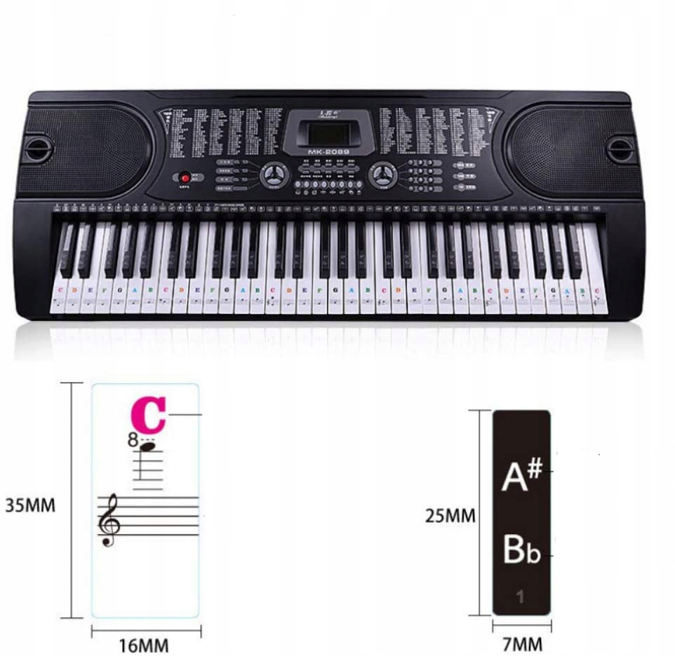 -88 naklejek na klawisze fortepianu nadaje się do więksości klawiatur fortepianowych i elektronicznych.