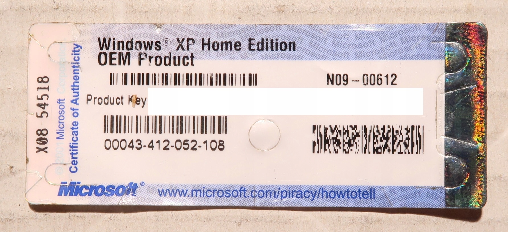 Windows XP Home Edition OEM Product Key Sticker