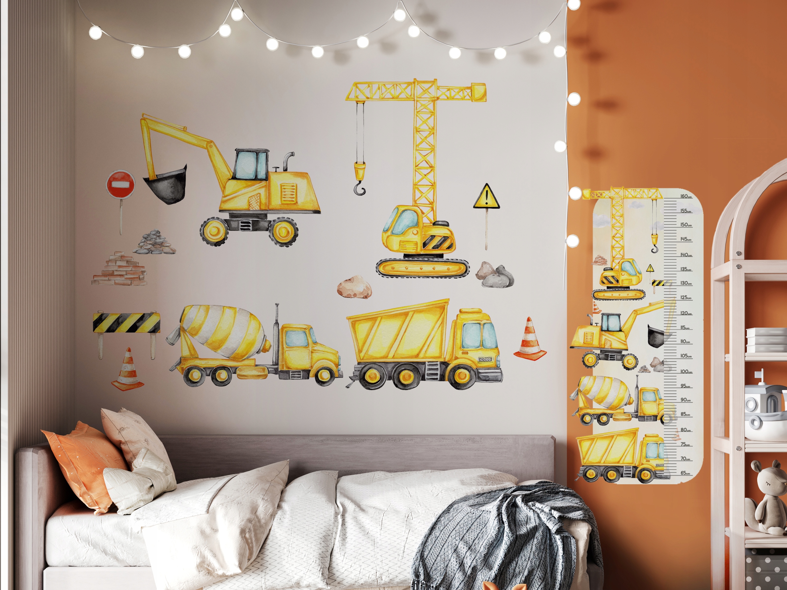 Наклейка на стіну для вимірювання висоти. Будівництво екскаватора