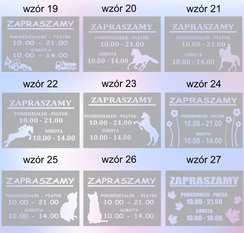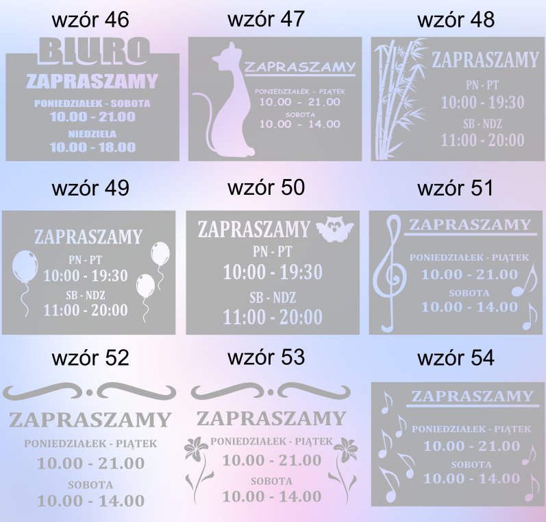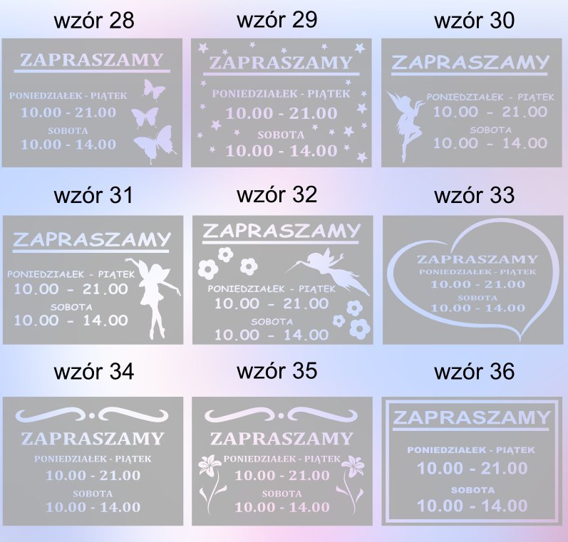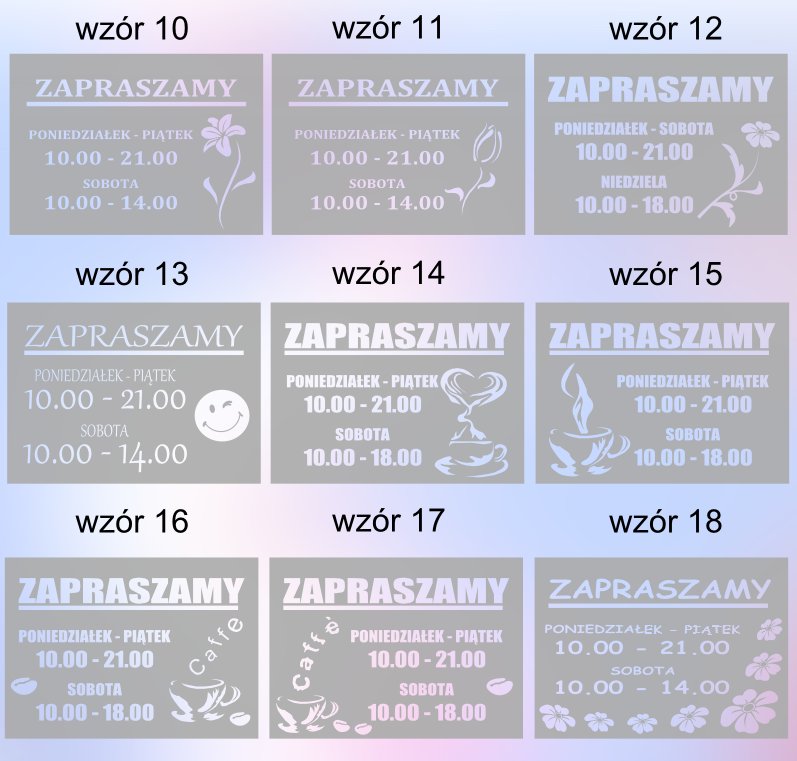 - Модификация рисунка: б> вы сами указываете часы работы; слово ДОБРО ПОЖАЛОВАТЬ можно заменить надписью типа: ФЛОРИСТ, МАГАЗИН, БИЗНЕС, ОФИС, КАФЕ, ПАБ, OPEN, OPEN (можно только одно слово); изменение шрифта и декора невозможно.