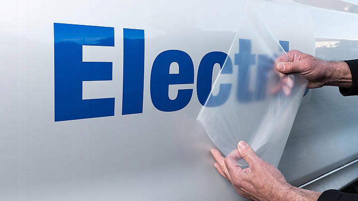 Наклейки вырезаем из фирменной фольги немецкой компании ORACAL. Это не отпечатки на бесцветной фольге или другой фольге, устойчивость которой к УФ-излучению и чистящим химикатам сомнительна. Цвета наших наклеек яркие и долговечные. Стандартно мы делаем глянцевые наклейки.