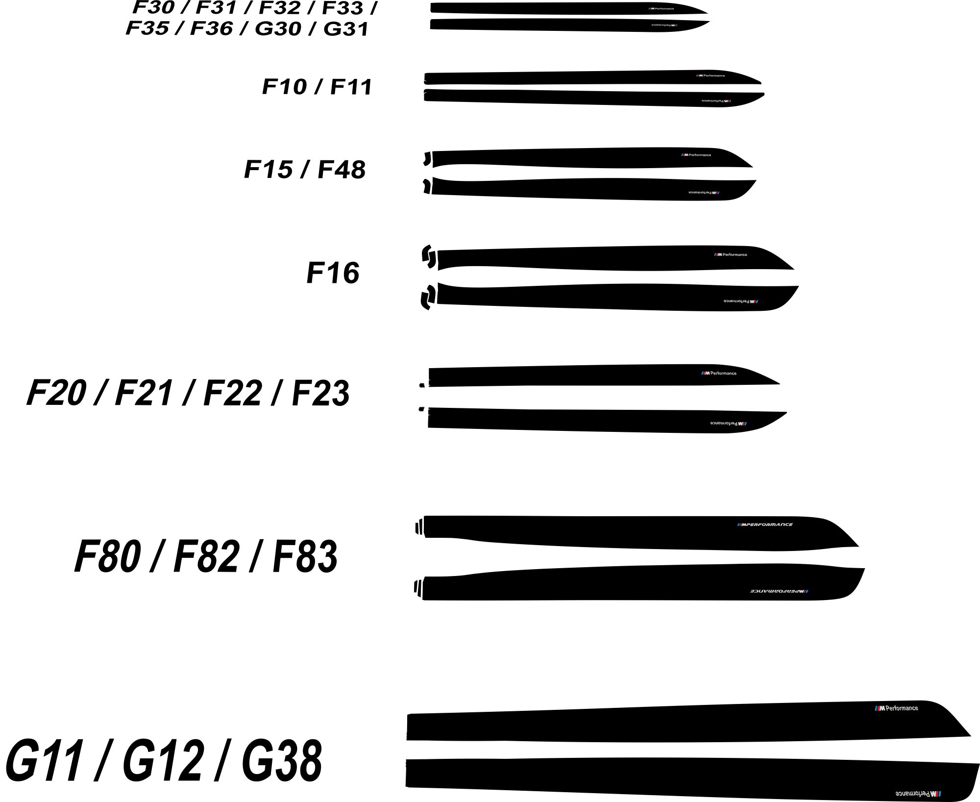 Образцы наклеек для различных моделей BMW: