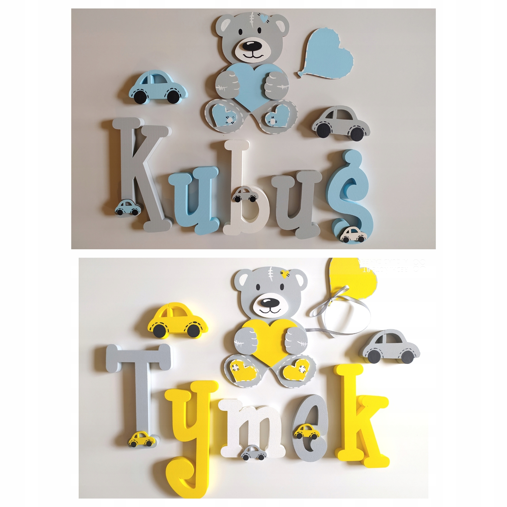 За каждое купленное имя вы получаете два больших декора по 10 см над надписью и несколько маленьких декоров, приклеенных к буквам в местах разрезов, как в наших проектах ниже в галерее.