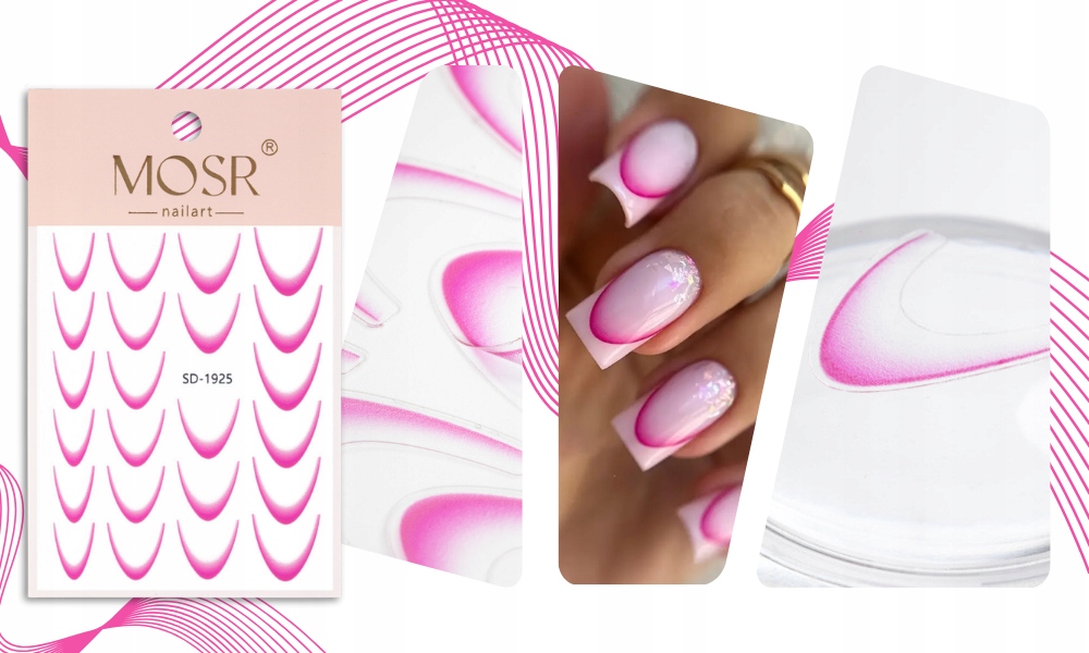 Наклейки для ногтей с французским эффектом омбре SD1925, ярко-розовые