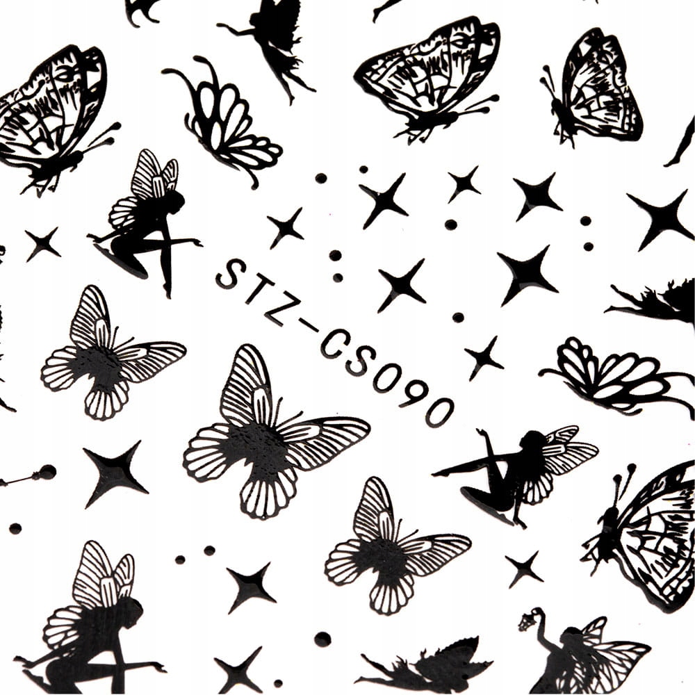 Самоклеящиеся тонкие наклейки для ногтей STZ-CS090 - Черные бабочки