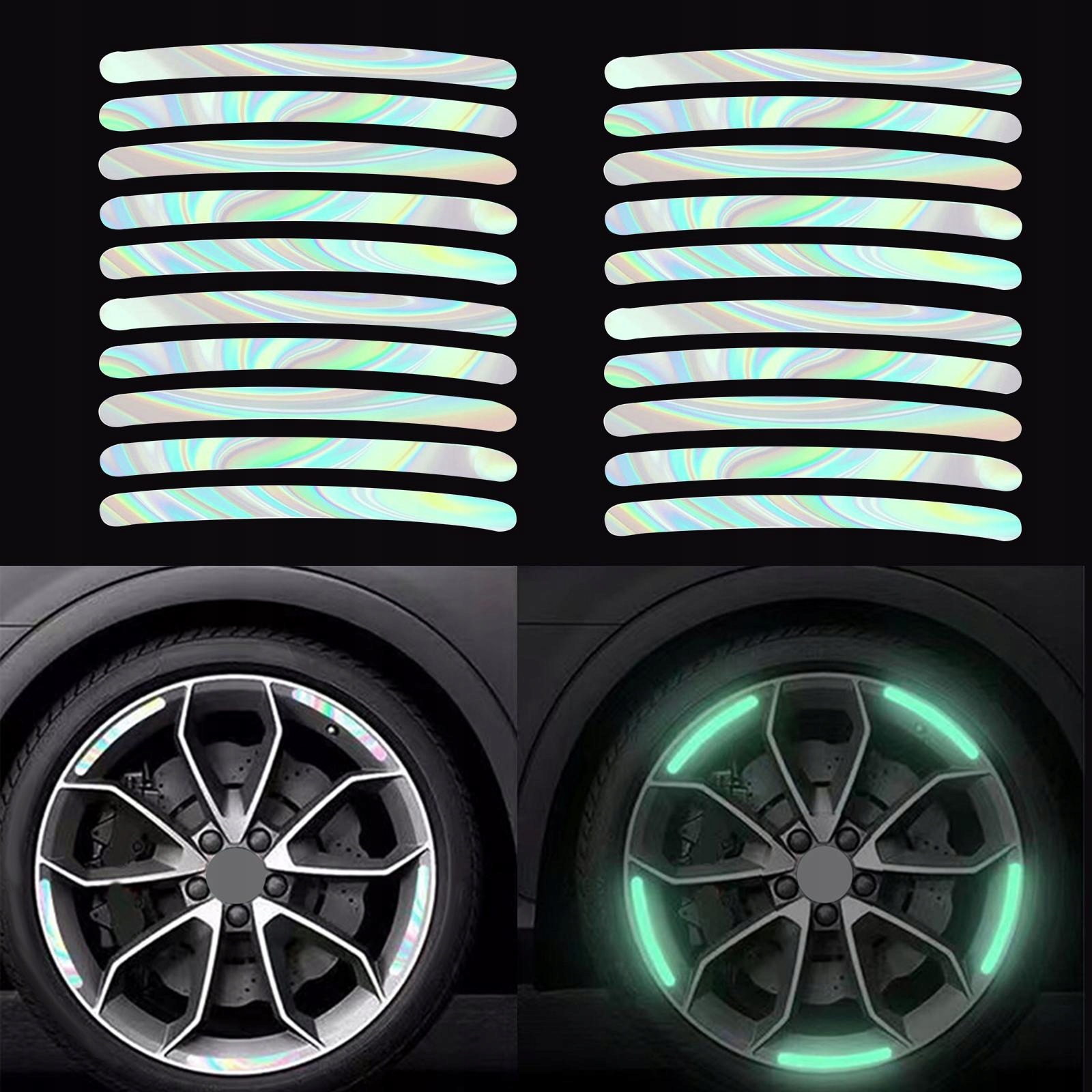 Рефлексивные наклейки на колесных ступицах: эффект радуги в течение дня, флуоресцентный эффект в действии. Рефлексивные рефлексивные наклейки отражают свет для водителя, привлечение внимания и напоминание ему о поддержании расстояния, повышении безопасности вождения.