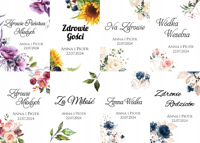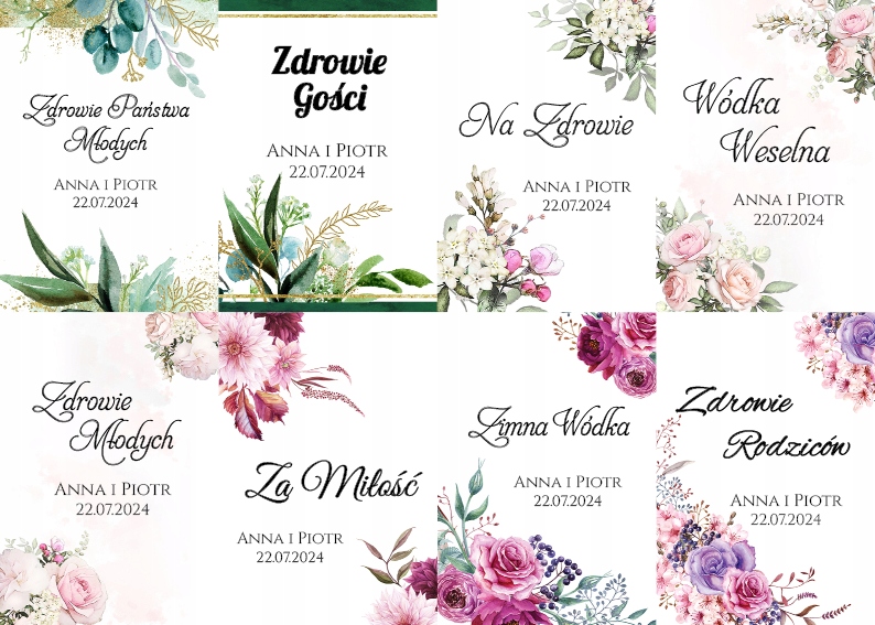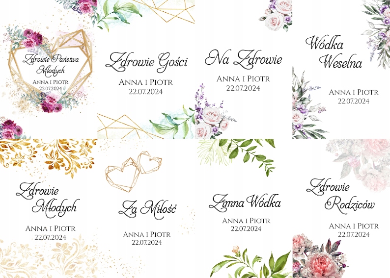 Наклейки на водку свадебные 45 дизайнов - 8 шт.
