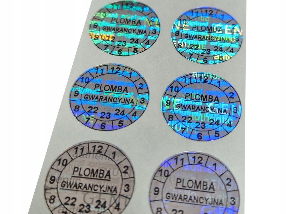 Мы предлагаем 250 штук гарантийных пломб размером Fi20 мм, изготовленных из фольги HOLOGRAM Genuine Original.