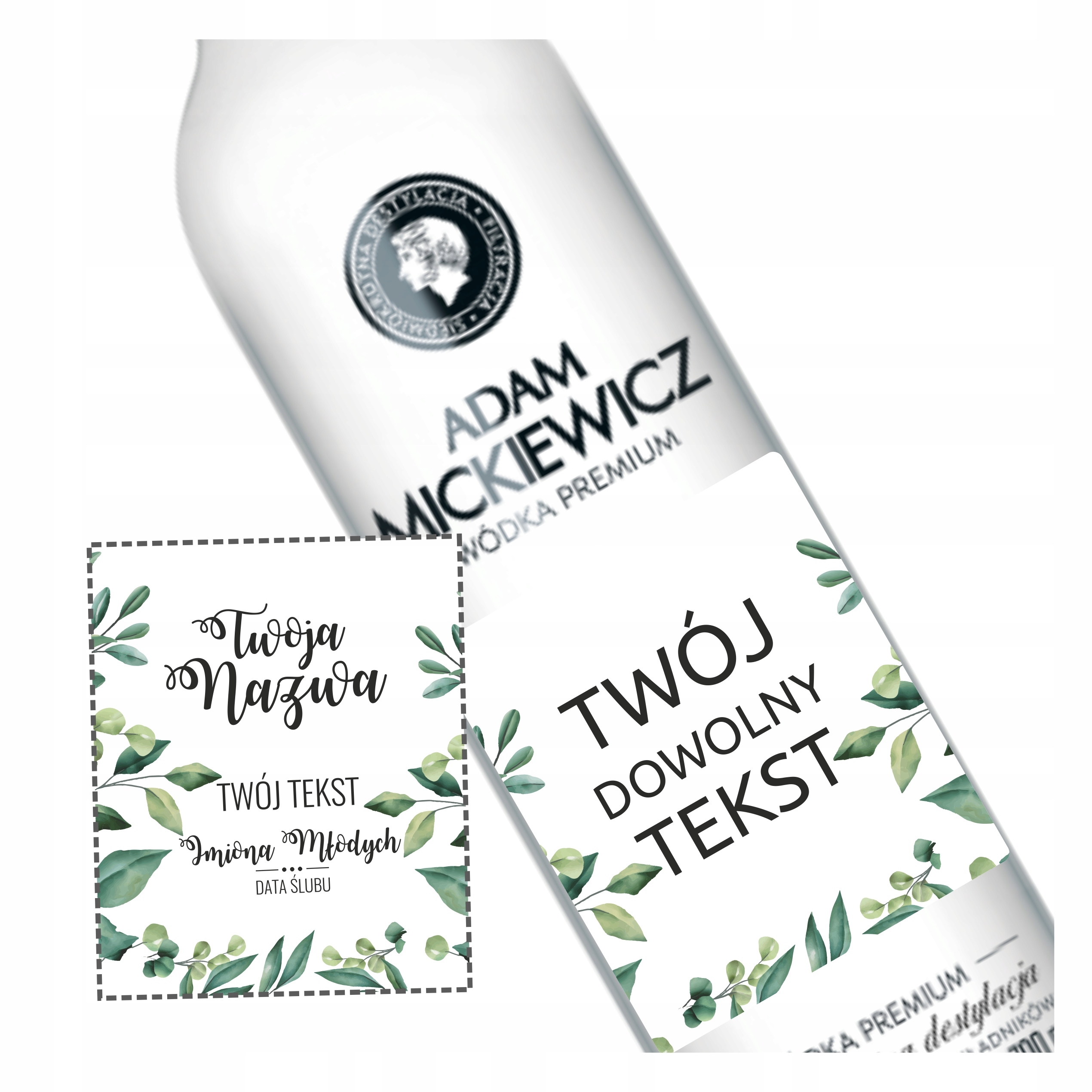 - наклейки, вырезанные в форме оригинальных этикеток, подходящие для бутылок 0,5 л. Водка Адам Мицкевич. Оригинальные этикетки удалять не обязательно.
