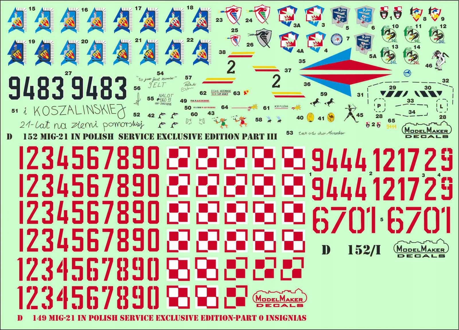 Наклейки ModelMakerD72152 МиГ-21 1/72 на вооружении Польши, эксклюзивное издание, часть III
