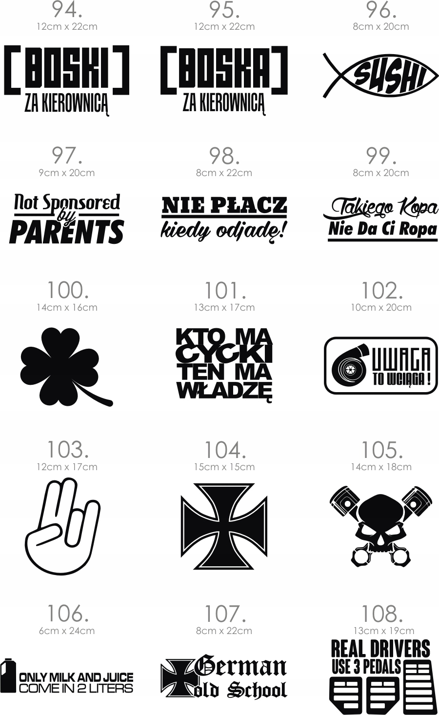 Просматривая «Наклейки на машину, прикольные наклейки УЗОРЫ», вы можете быть уверены, что данный товар из каталога «Наклейки» будет доставлен из Польши и проверен на целостность. В цене товара, указанной на сайте, учтена доставка из Польши. Внимание!!! Товары для Евросоюза, согласно законодательству стран Евросоюза, могут отличаться упаковкой или наполнением.