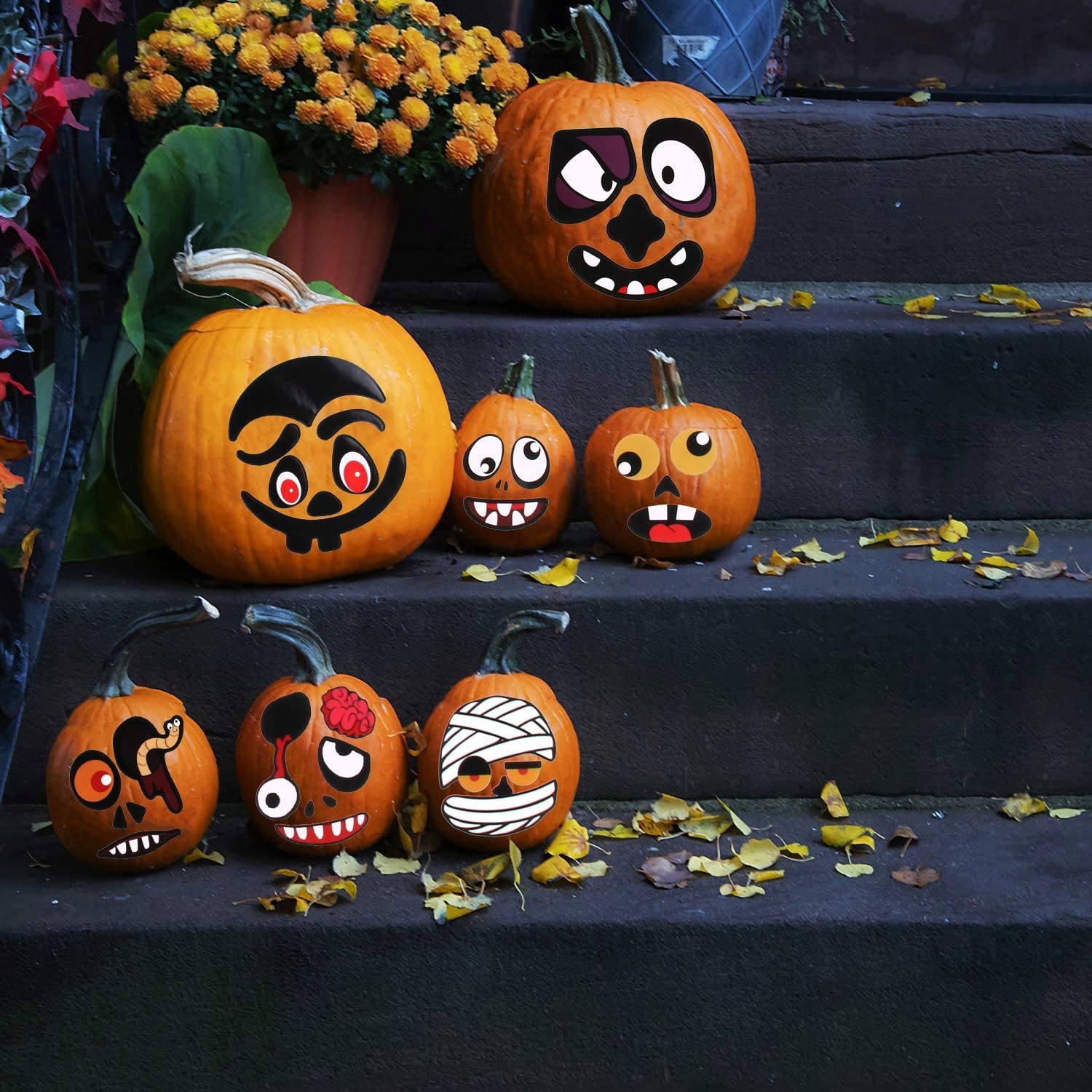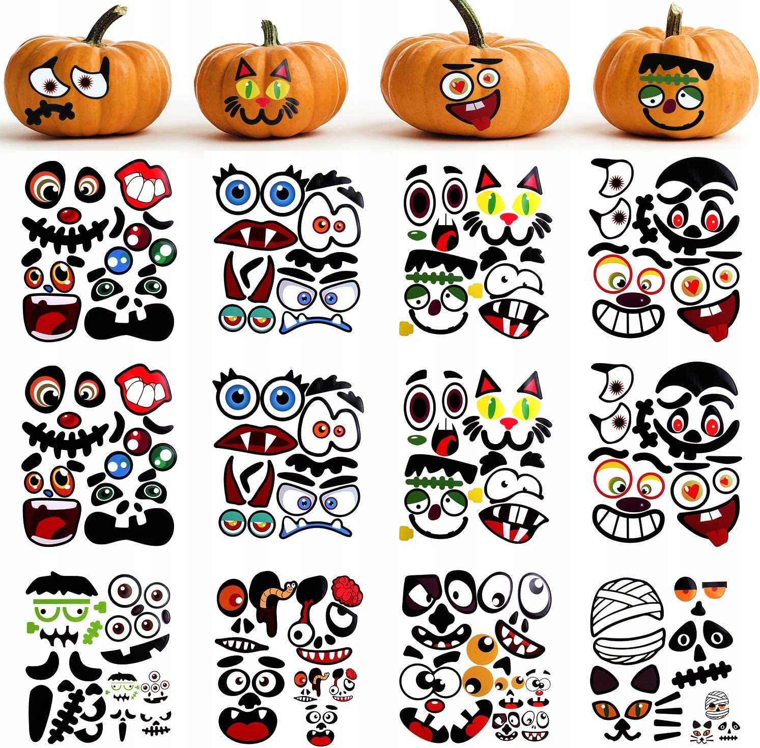 Особое угощение на Хэллоуин: хорошие игрушки для вечеринок в честь Хэллоуина и классных занятий, которые проще и веселее, чем традиционные занятия по вырезанию тыквы. Эти наклейки с выражением лица можно использовать не только в качестве украшения тыквы, но и в качестве обычного украшения Хэллоуина, и их можно приклеить в любом месте на гладкой поверхности.