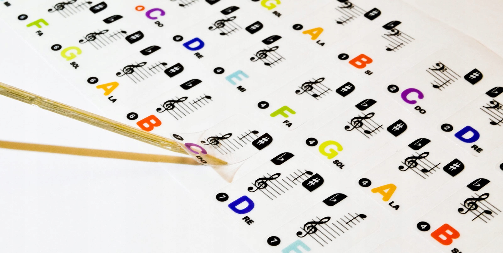 Этикетки для фортепиано и клавиатур для облегчения обучения игре.