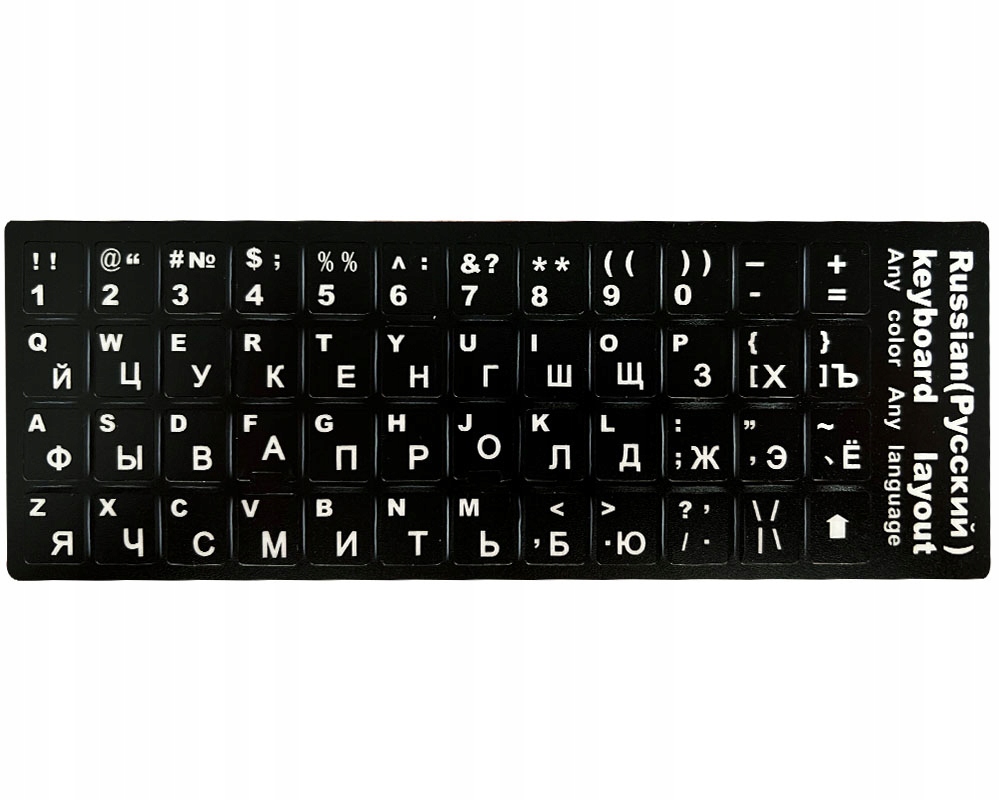 Благодаря современному дизайну и высокому качеству наклеек после их использования ваша клавиатура будет выглядеть так новый. Два типа раскладки символов, QWERTY и кириллица, сделают ваше устройство универсальным и позволят свободно писать на языках, использующих обе системы символов.