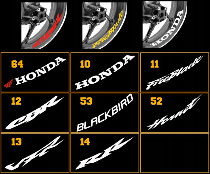 Наклейки на внутреннем ободе подходят для мотоциклов марок: