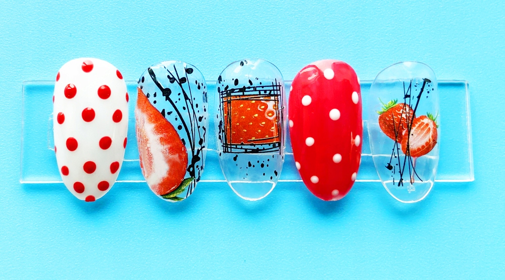 Наклейки на украшение ногтей. Клубничные узоры