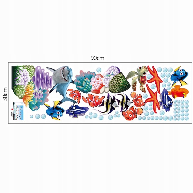 Рыбку можно свободно расположить, поэтому размер оценивается в 130см на 60см . На фото ниже представлен вид, в котором вы получите наклейку — каждый элемент можно наносить отдельно.