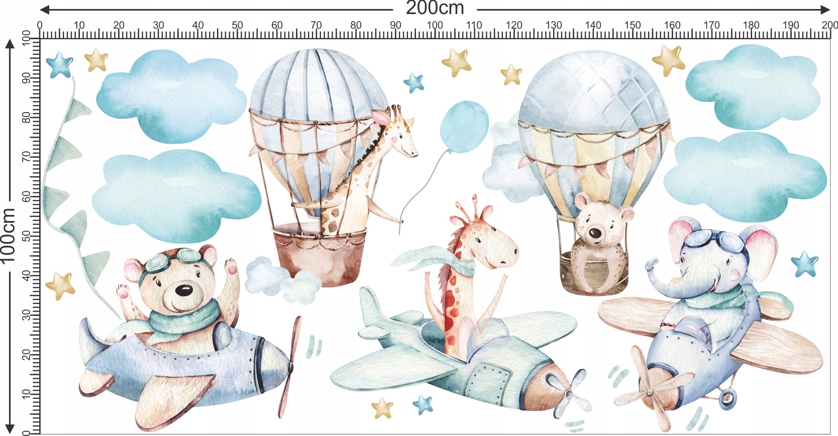 Наклейки на стіну літаки повітряні кулі 100x200см LO4