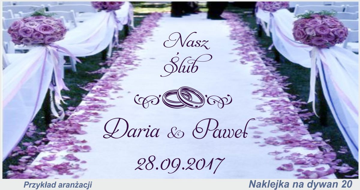 Просматривая «Свадебные наклейки на ковровые покрытия, свадебные надписи 50x40 см.», вы можете быть уверены, что данный товар из каталога «[rubrica_name]» будет доставлен из Польши и проверен на целостность. В цене товара, указанной на сайте, учтена доставка из Польши. Внимание!!! Товары для Евросоюза, согласно законодательству стран Евросоюза, могут отличаться упаковкой или наполнением.