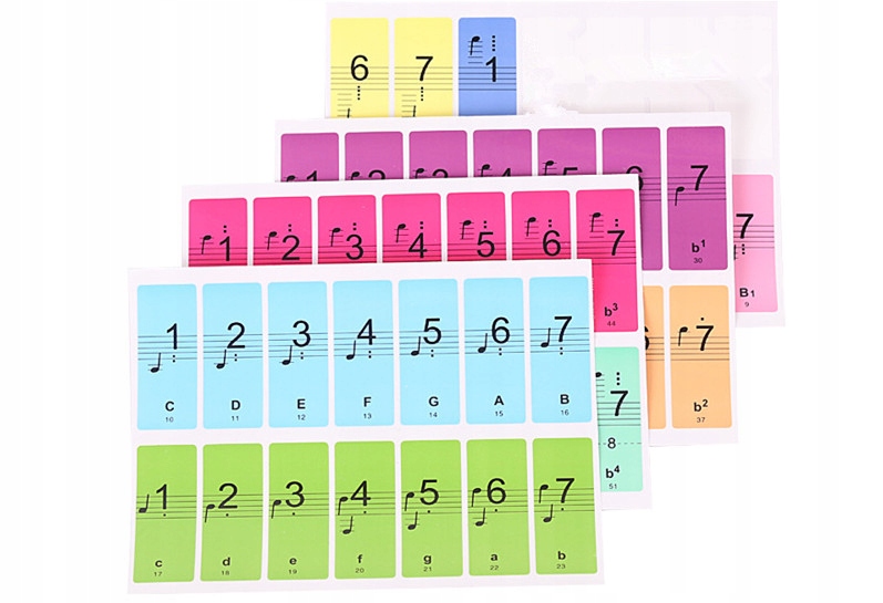 Наши наклейки изготовлены из фольги высочайшего качества. Все наклейки дополнительно покрыты тонким слоем защитной фольги, предназначенной для защиты наклеек от истирания. Мы ценим качество и уникальный внешний вид, поэтому предоставляем вам продукт, разработанный нашими графическими дизайнерами по специальному заказу. Музыкальные наклейки — это продукт, который идеально подойдет для обучения игре на клавишных музыкальных инструментах, что делает обучение игре намного проще и приятнее.