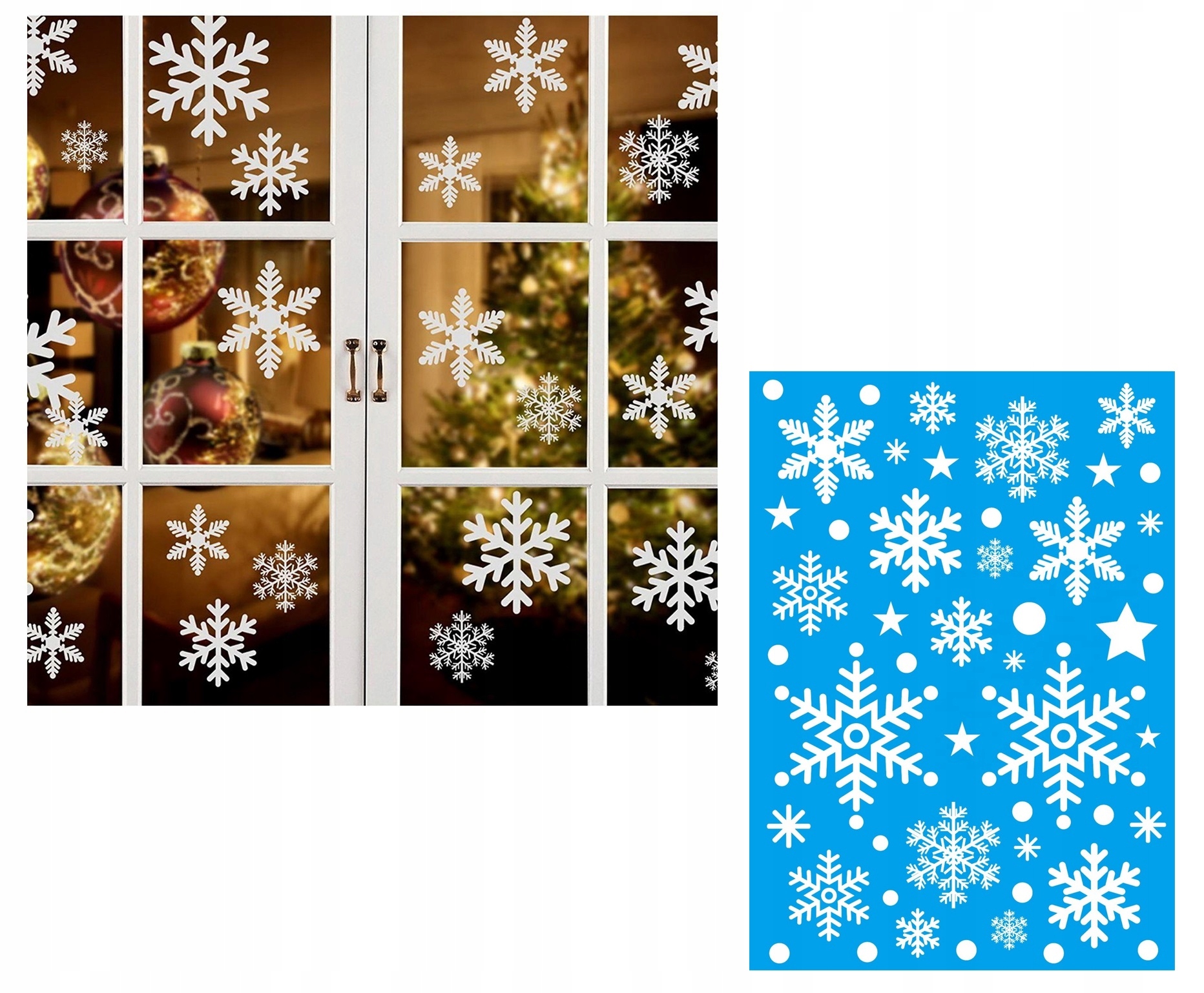 КАЧЕСТВЕННЫЕ БЕСКЛЕЙНЫЕ РОЖДЕСТВЕНСКИЕ НАКЛЕЙКИ НА ОКНО «СНЕЖИНКА» x 48 ШТ