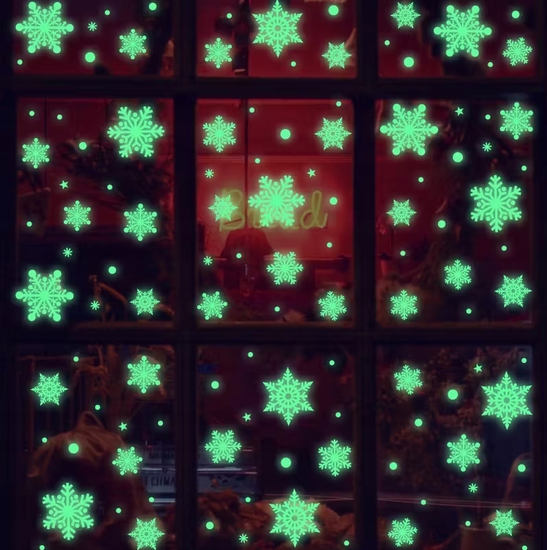 Светящиеся в темноте наклейки-снежинки, бесклеевые украшения для окон, 92 шт.