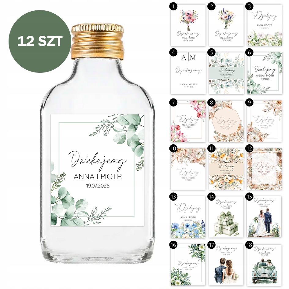 Naklejki na butelki 100 ml dla gości na wesele ślub 12 szt- PERSONALIZACJA