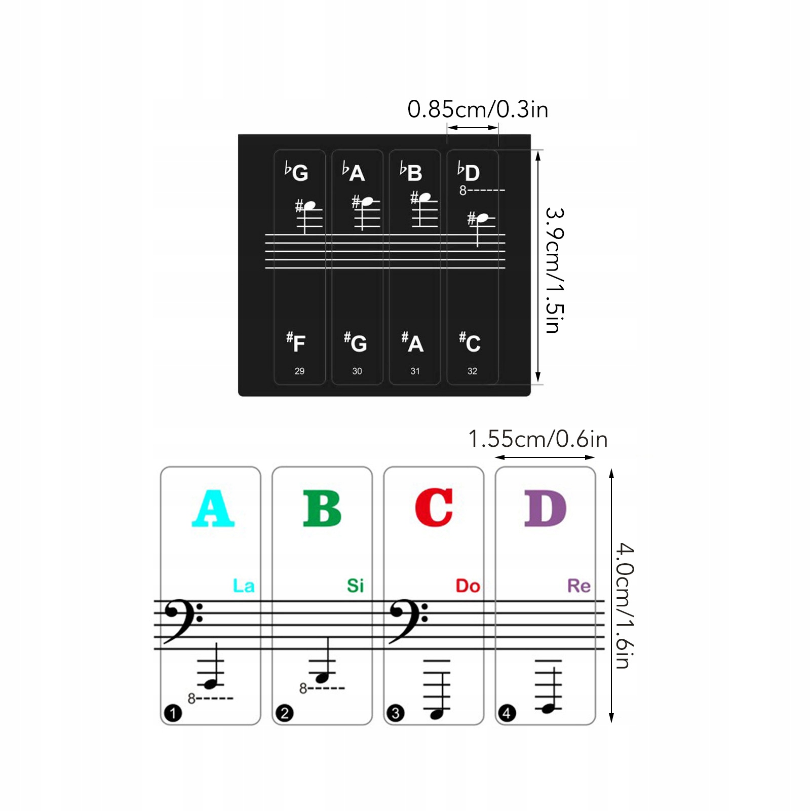 1. ШИРОКОЕ ПРИМЕНЕНИЕ: Подходит для всех фортепиано и клавишных инструментов 88/61/54/49. Размер белых наклеек для ключей составляет 4,0 x 1,55 см, а для черных – 3,9 x 0,85 см.