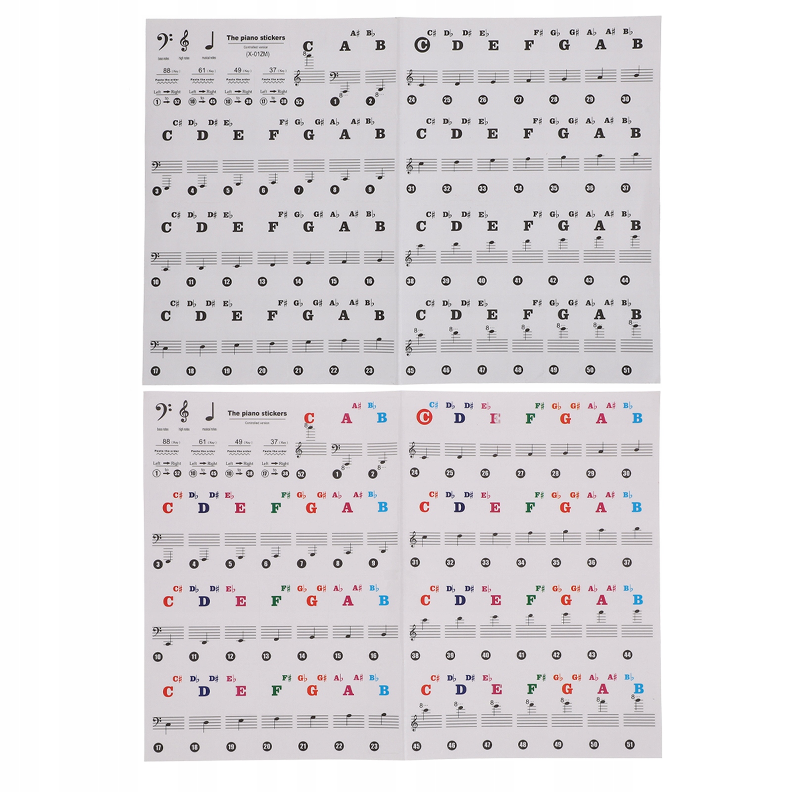 NAKLEJKI NA KLAWIATURĘ PIANINA POCZĄTKUJĄCYCH ŁATWE I TRWAŁE