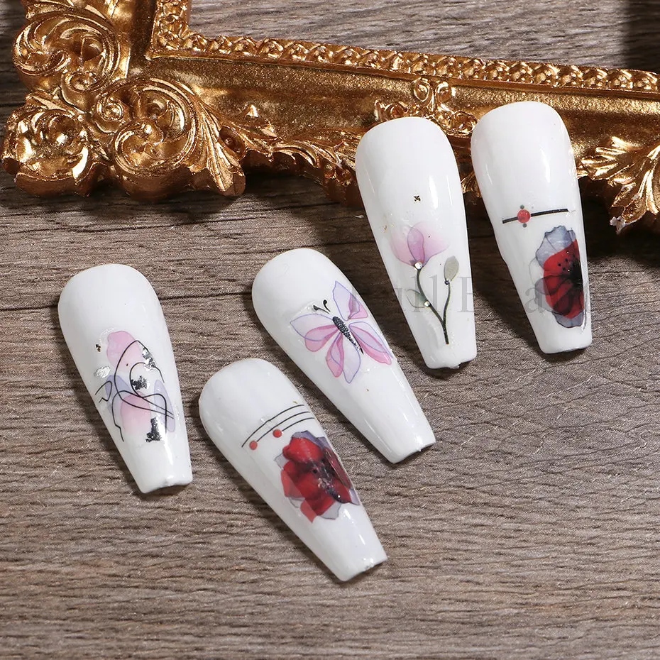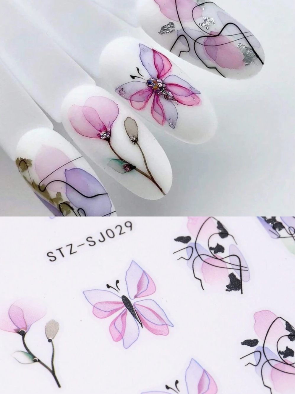 NAKLEJKI na paznokcie SAMOPRZYLEPNE ozdoby do paznokci motyle różowe kwiaty