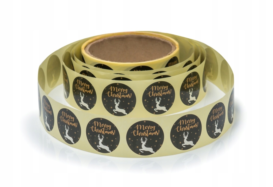 NAKLEJKI OKRĄGŁE NA ROLCE FI 30MM "MERRY CHRISTMAS Z JELONKIEM"