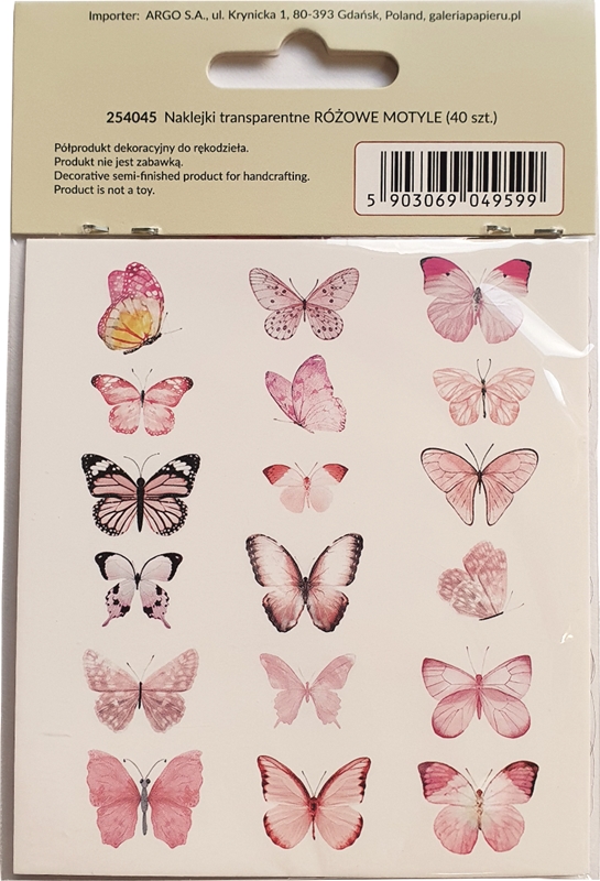 NAKLEJKI TRANSPARENTNE 40szt. RÓŻOWE MOTYLE