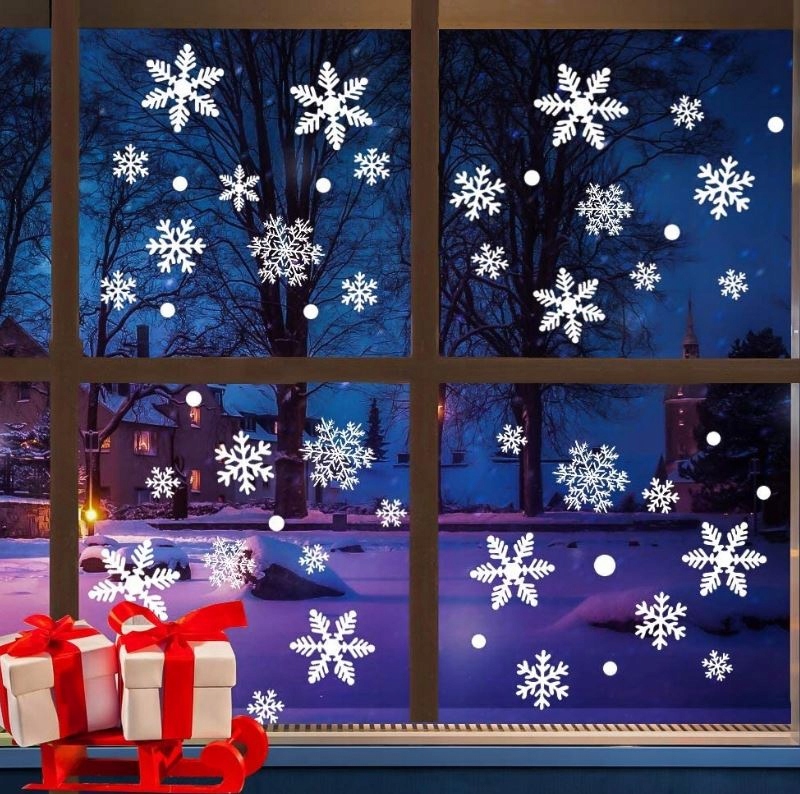 Рождественские наклейки украшения на окне зеркало дверь снежинки бесплатно