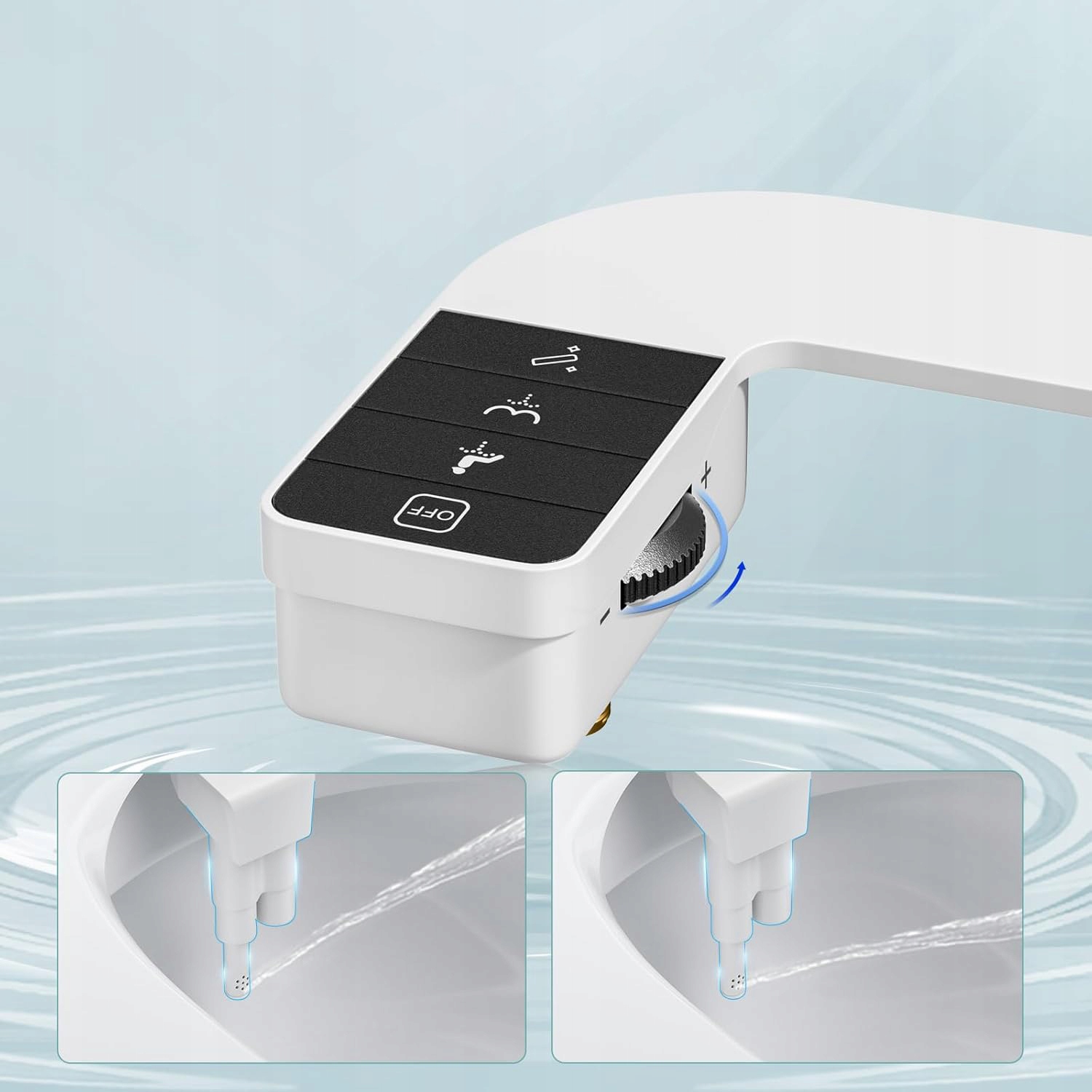 - ✔️С двумя насадками обеспечивает очистку спереди и сзади, что значительно снижает расход туалетной бумаги и обеспечивает более тщательную очистку.