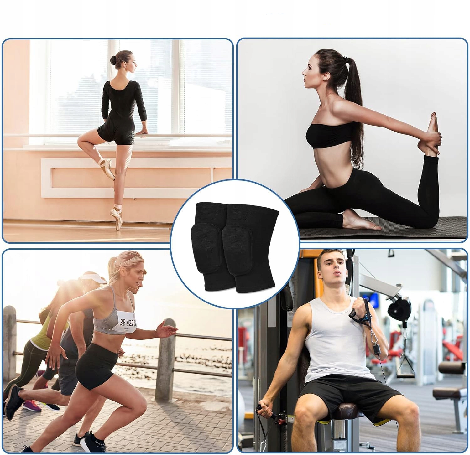 🦵Для широких спортивных сцен: наколенники подходят для различных спортивных сцен, включая танцы, волейбол, баскетбол, футбол, борьбу, бег, альпинизм, езду на велосипеде, йогу, танцы, катание на коньках, фитнес и другие. спорт.